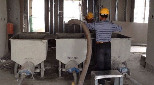 我公司為某鋼構(gòu)公司特制的一批GS20E灌漿泵,近期在北方一建筑全面鋪開使用,主要用于EPS混凝土的輸送和灌注,再次將EPS混凝土灌注施工推向高潮。該公司一直致力于EPS混凝土的開發(fā)和運(yùn)用,并取得了主管部門頒發(fā)的適用許可。