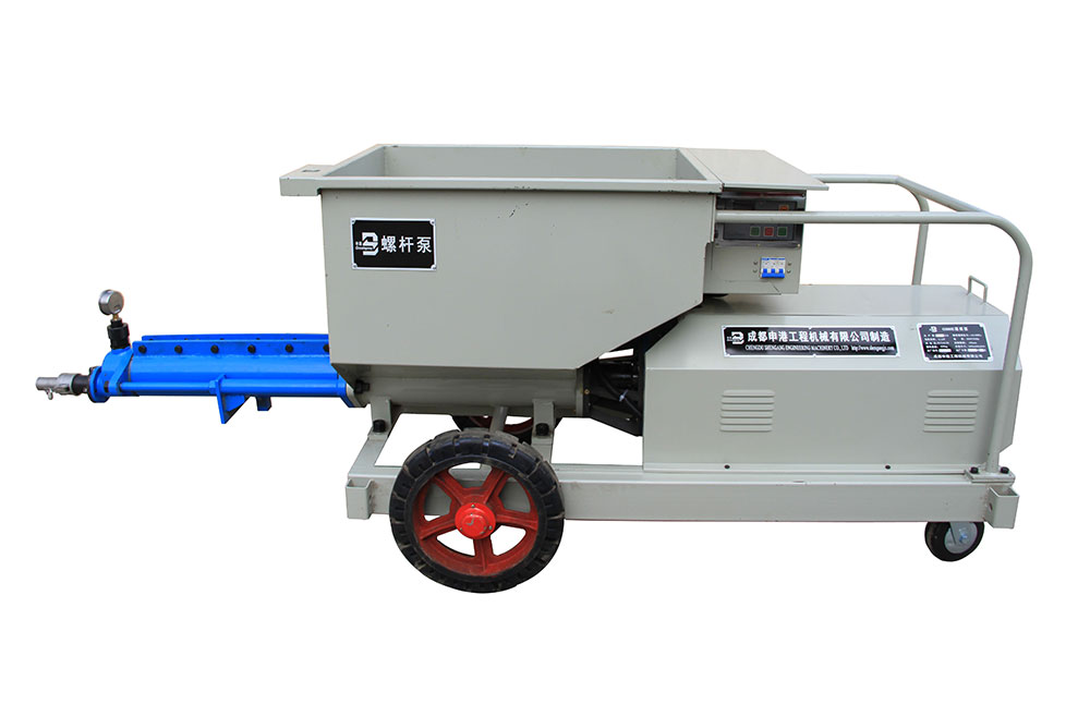 該泵結(jié)構(gòu)新穎、構(gòu)思獨(dú)特;避免了灌注稠漿較困難的不足,使用安全方便、效率高。本機(jī)主要由電動(dòng)機(jī)減速器、輸漿體、增壓蝸桿、增壓定子、測(cè)壓、料斗、電控系統(tǒng)等組成,當(dāng)用于噴護(hù)時(shí),還包括噴射器,其特點(diǎn)如下: