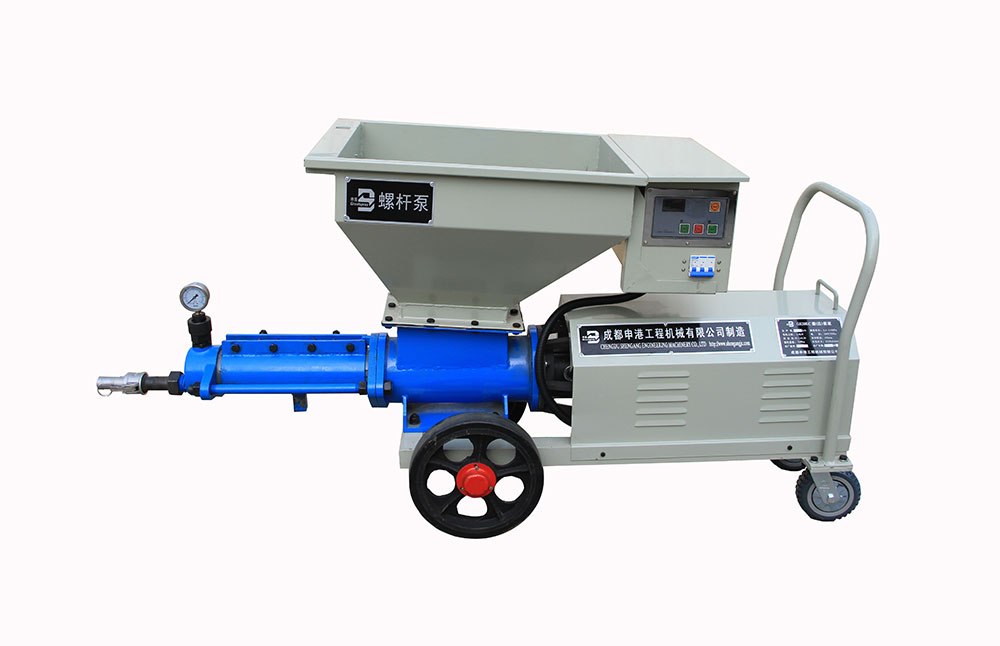 該泵結(jié)構(gòu)新穎、構(gòu)思獨(dú)特;避免了灌注稠漿較困難的不足,使用安全方便、效率高。本機(jī)主要由電動(dòng)機(jī)、減速器、輸漿體、增壓蝸桿、增壓定子、測(cè)壓 儀、料斗(或進(jìn)料接盤),當(dāng)用于噴護(hù)時(shí),還包括噴射器,其特點(diǎn)如下: